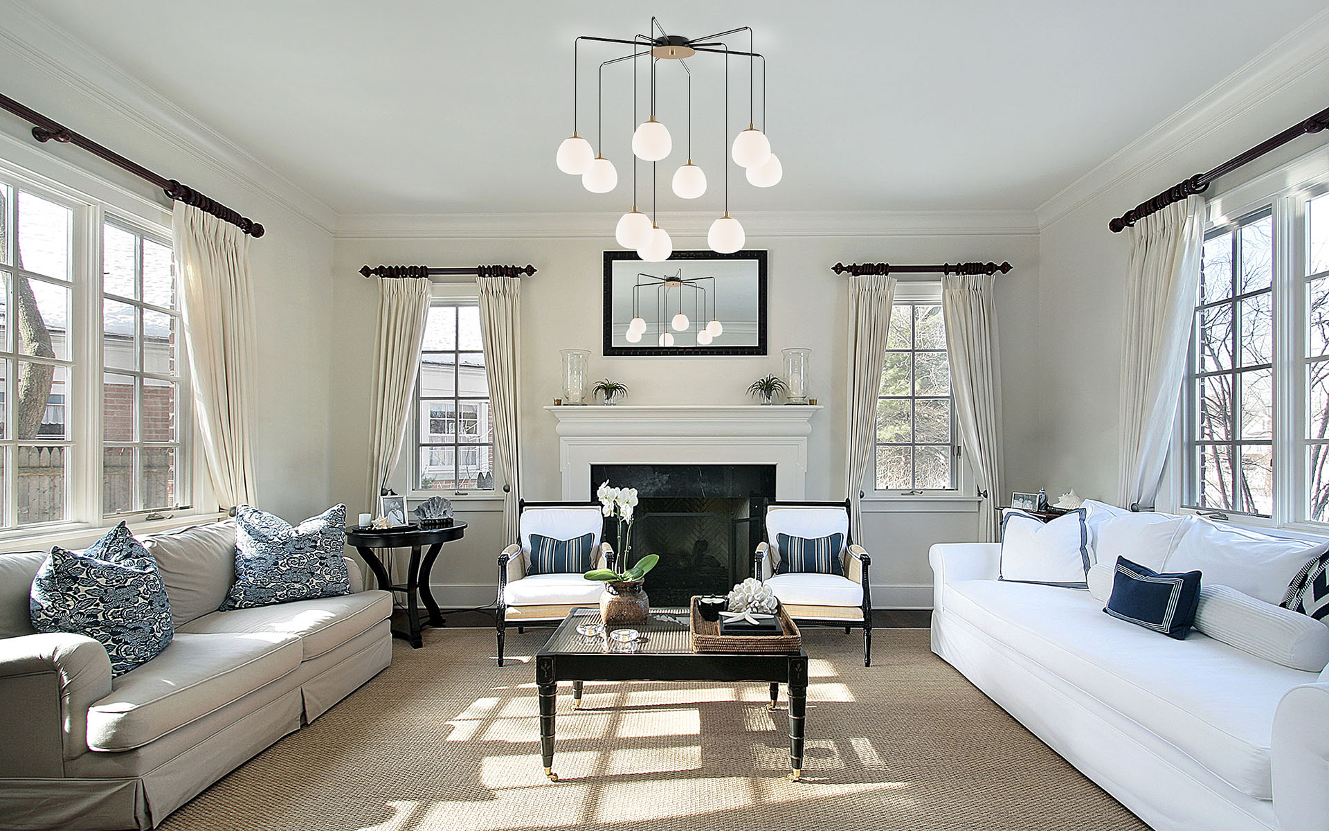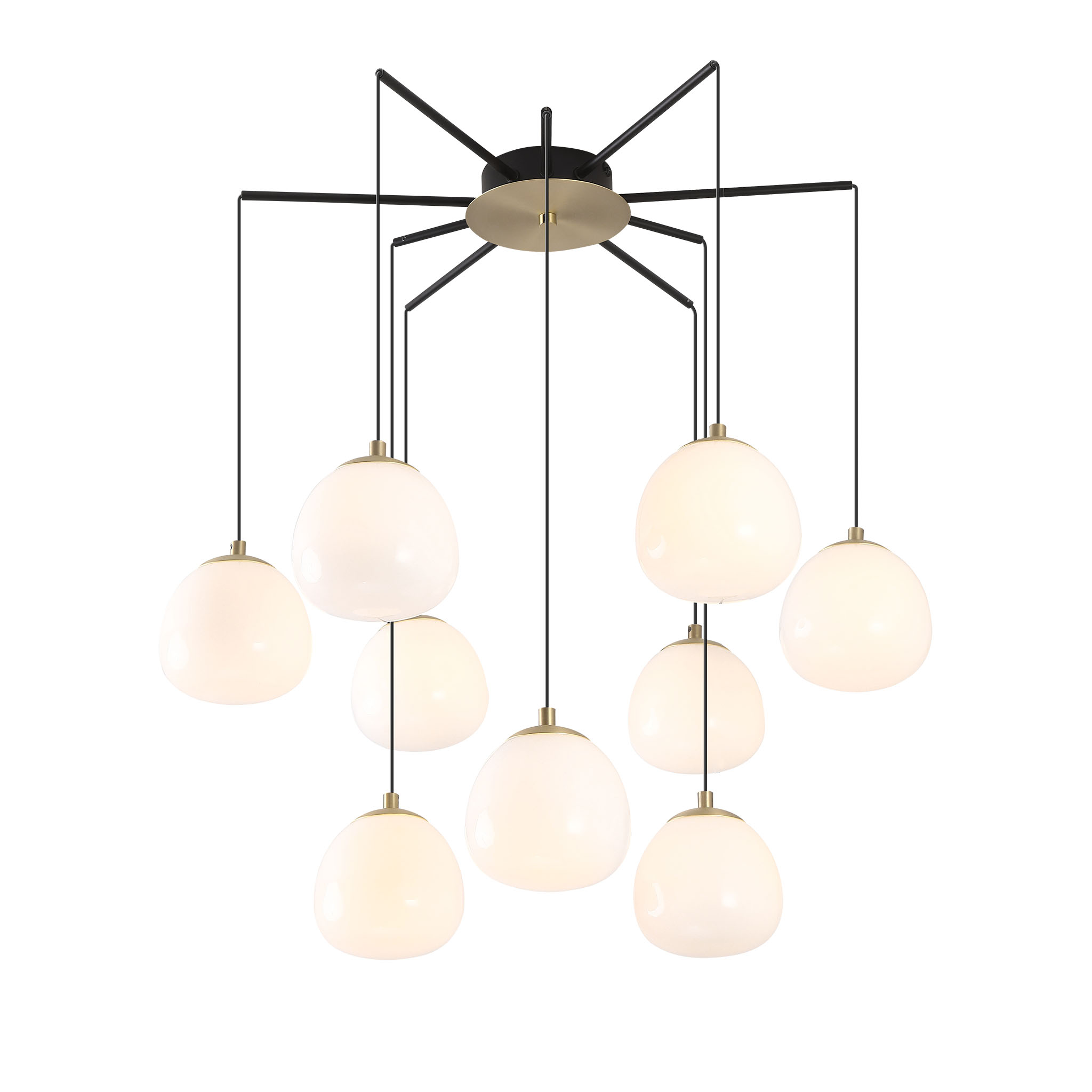 Элегантный многоуровневый подвесной светильник Raindrop создан с учетом современных интерьерных решений. Его оригинальная конструкция сочетает черный металлический каркас и белые стеклянные плафоны с золотистыми элементами, напоминающие мягкие светящиеся облака. Плафоны расположены на разной высоте, создавая скульптурный и динамичный световой акцент, который идеально подойдет для просторной гостиной, холла с лестницей или интерьеров с высокими потолками.