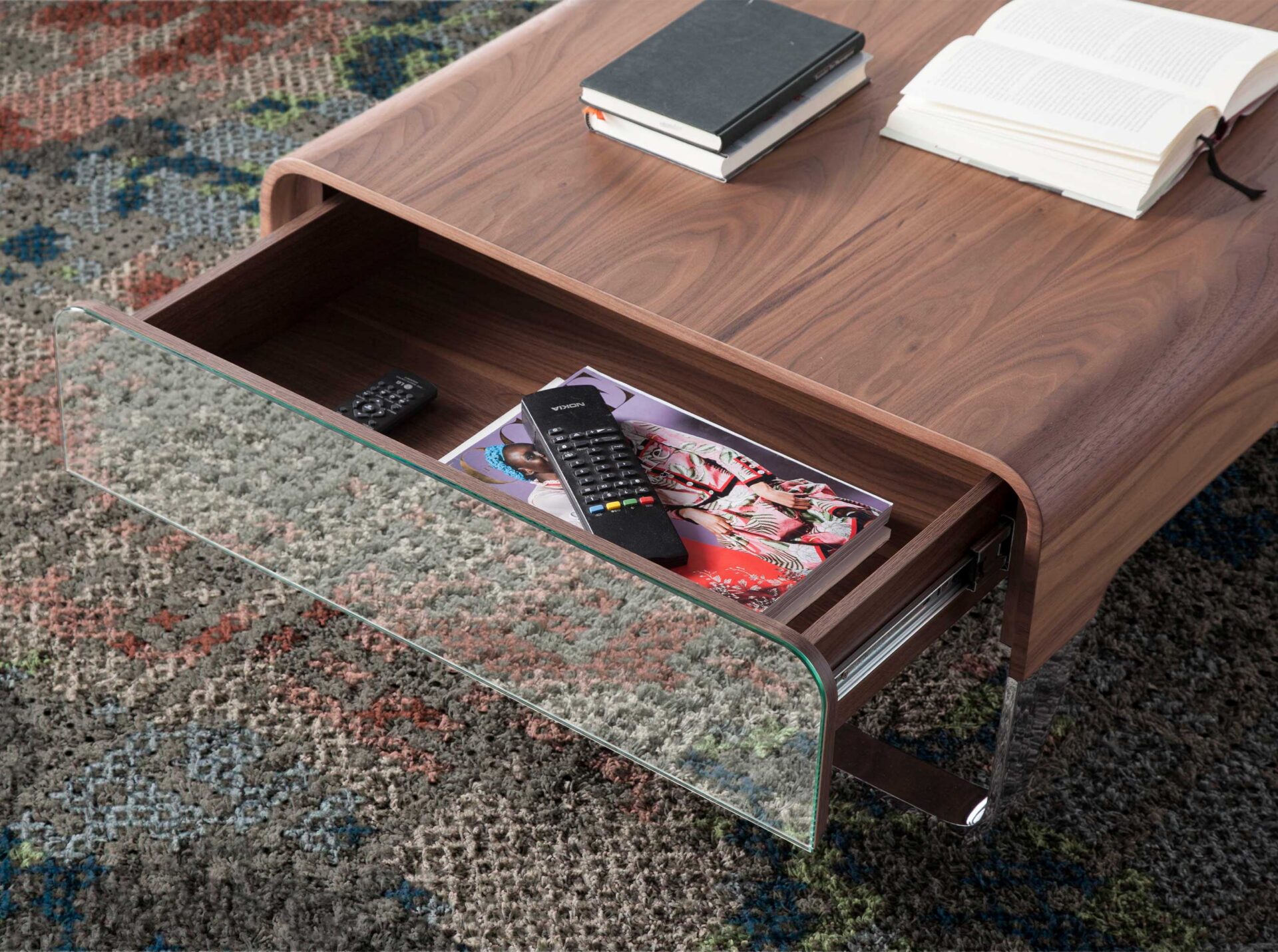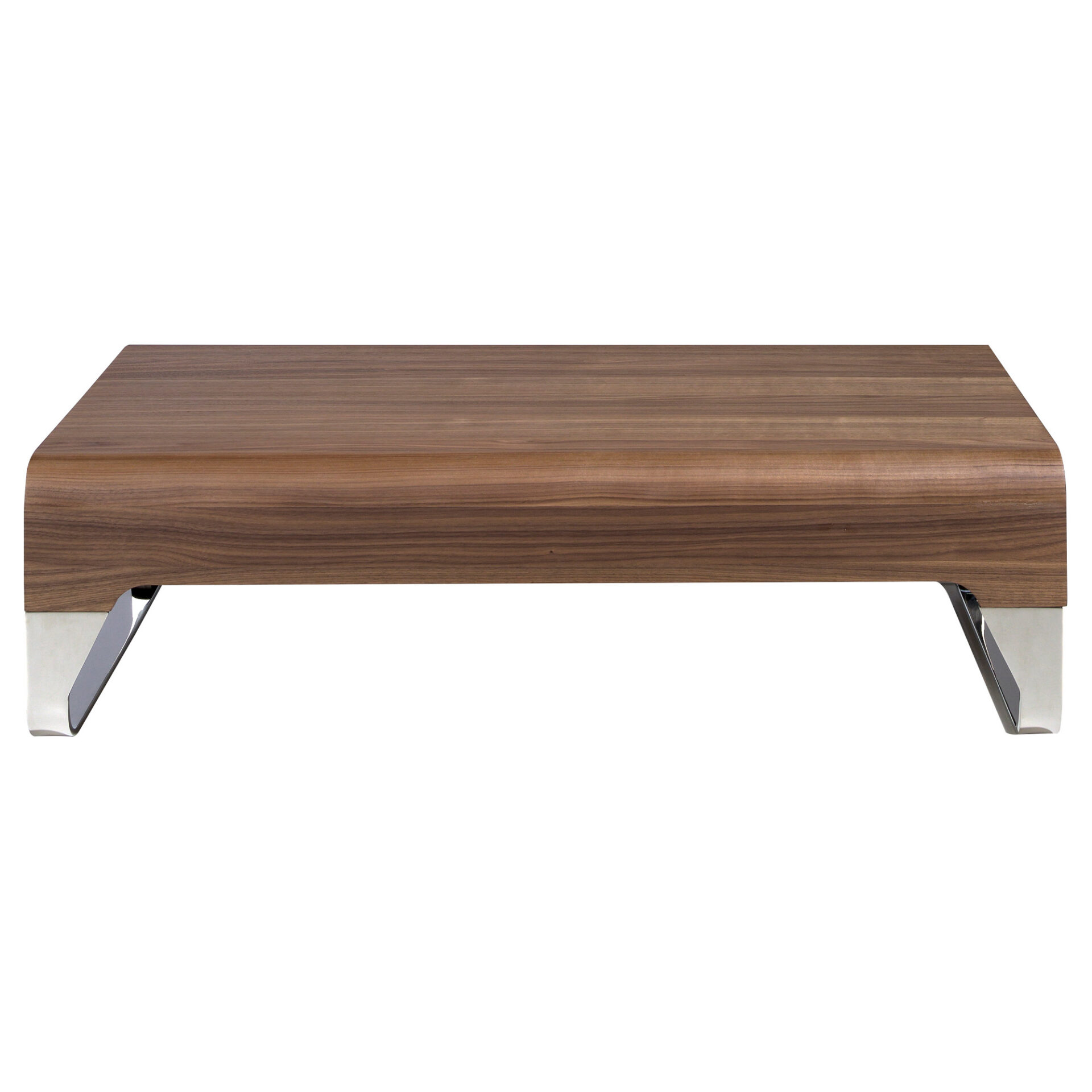 Ristkülikukujuline kohvilaud moodsa disainiga, mis on valmistatud naturaalsest pähklipuuspoonist. Kroomitud roostevabast terasest jalgade struktuur annab teie koju modernsuse ja avangardsuse hõngu. Originaalsed peegelklaasist detailid lisavad teie elutuppa ideaalse stiili.