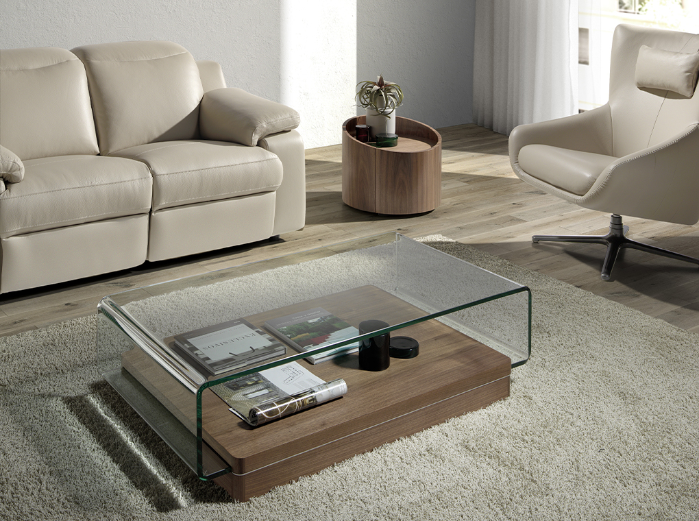 Moodne ristkülikukujuline kohvilaud karastatud klaasist pealispinna ja naturaalsest pähklipuust vineerist originaalsete puidust jalgadega. Lihtsa, kuid originaalse disainiga laud, mis lisab ainulaadse ja isikupärase puudutuse.
