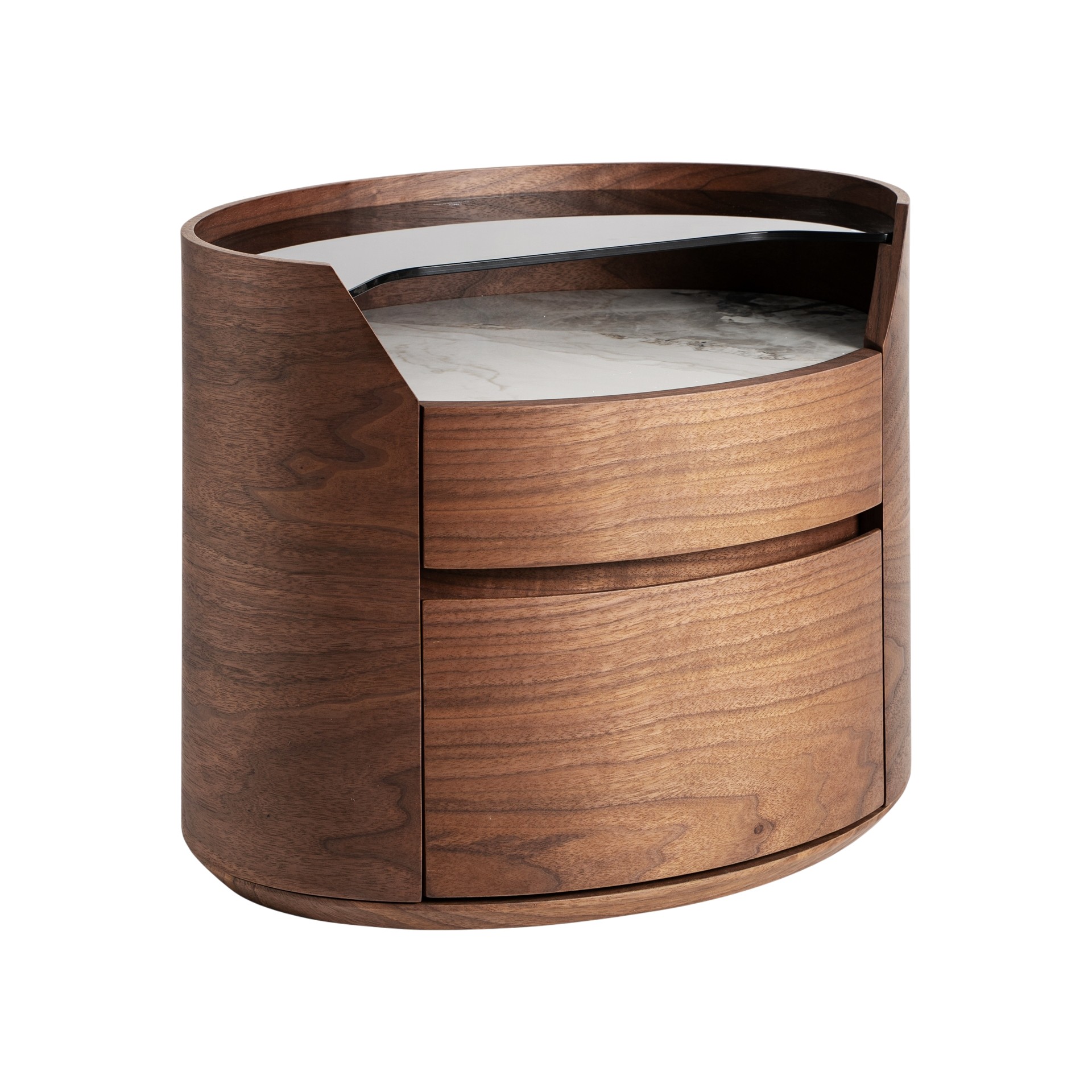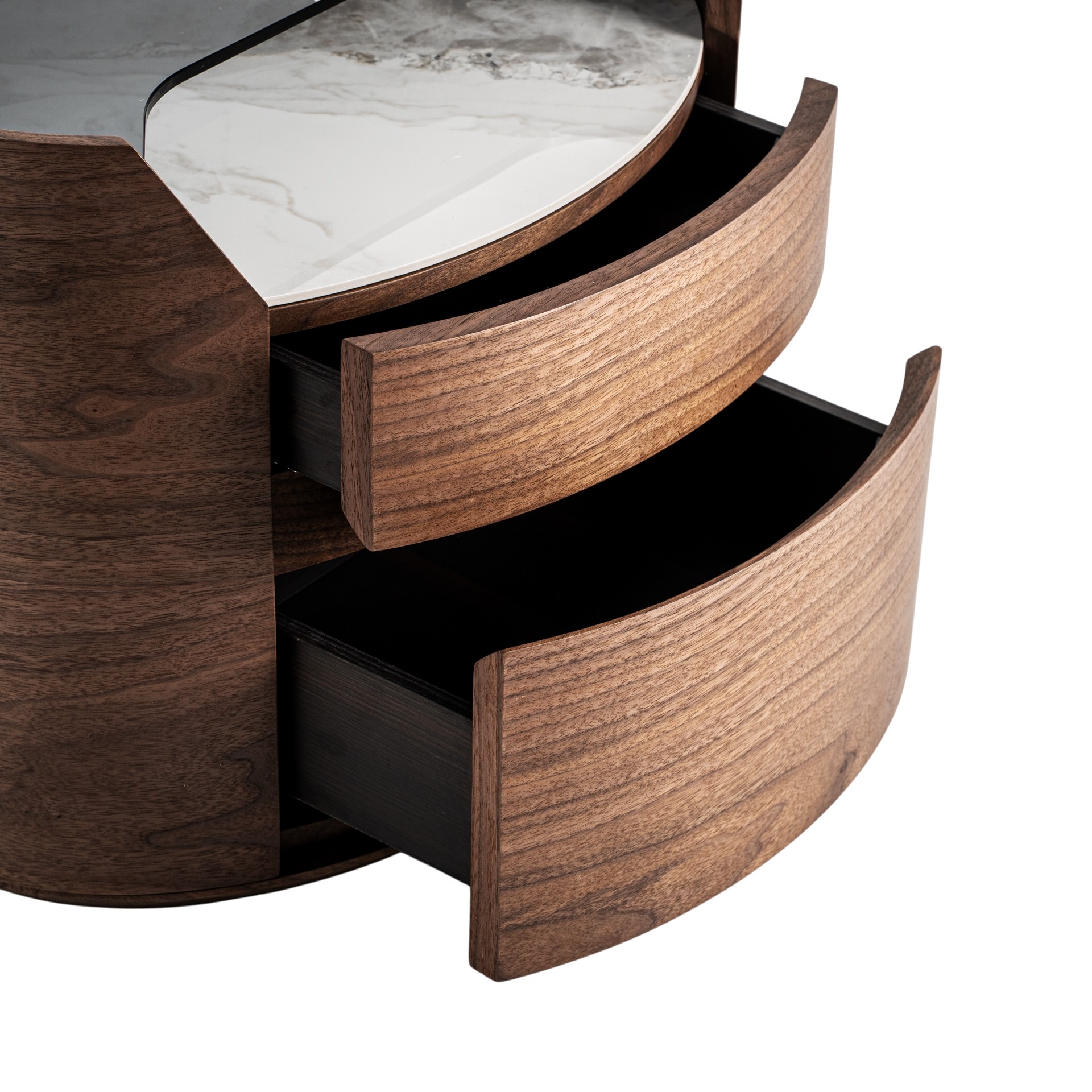 Vical toob teieni eksklusiivse disainiga öökapi, mis ühendab naturaalse pähklipuu soojust, elegantset marmorist pealispinda ja peene käsitöö. See ümarate joontega öökapp on ideaalne täiendus luksuslikku magamistuppa, kus väärtustatakse detailide täpsust ja materjalide loomulikku ilu. Ülemine marmorplaat lisab mööblile visuaalset kontrasti ja praktilisust – pind on vastupidav, lihtsasti puhastatav ja ülimalt šikk.