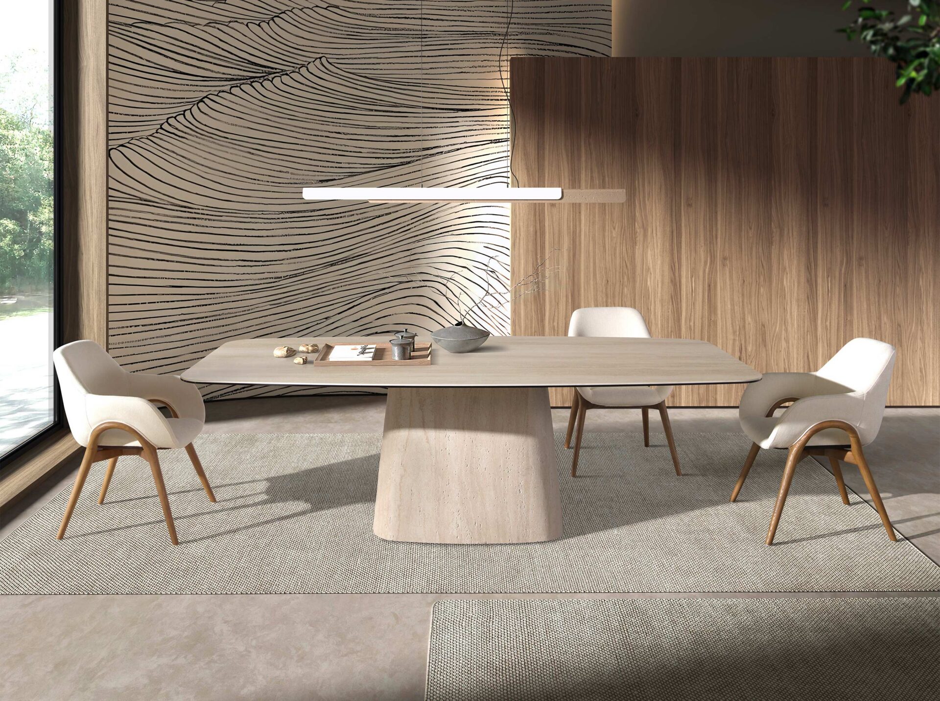 Angel Cerda esitleb luksuslikku ja modernset söögilauda, mis ühendab skandinaavialiku minimalismi ning loodusliku elegantsi. See elegantne laud on ideaalne valik kaasaegsesse interjööri, kus väärtustatakse kvaliteeti ja disaini. Tugeva kivist keskjalaga ning õhukese, ent vastupidava lauaplaadiga mudel toob ruumi eksklusiivsust ja ajatut stiili. Neutraalses beezis toonis kivipind lisab interjöörile soojust ning sobib suurepäraselt nii elutuppa kui ka avatud köök-söögituppa.