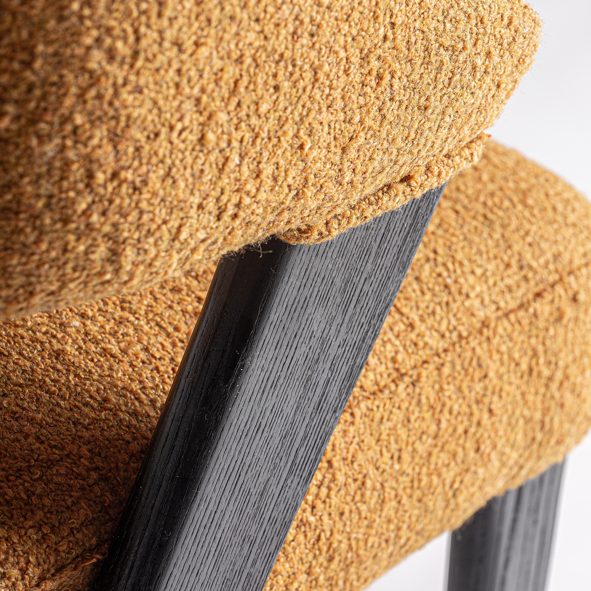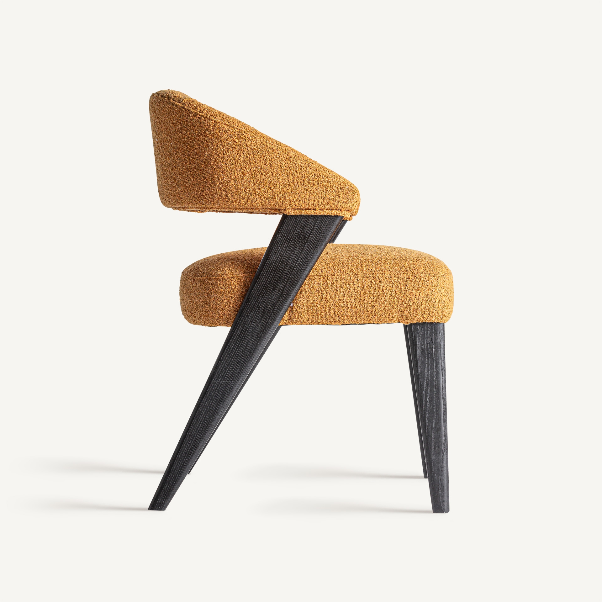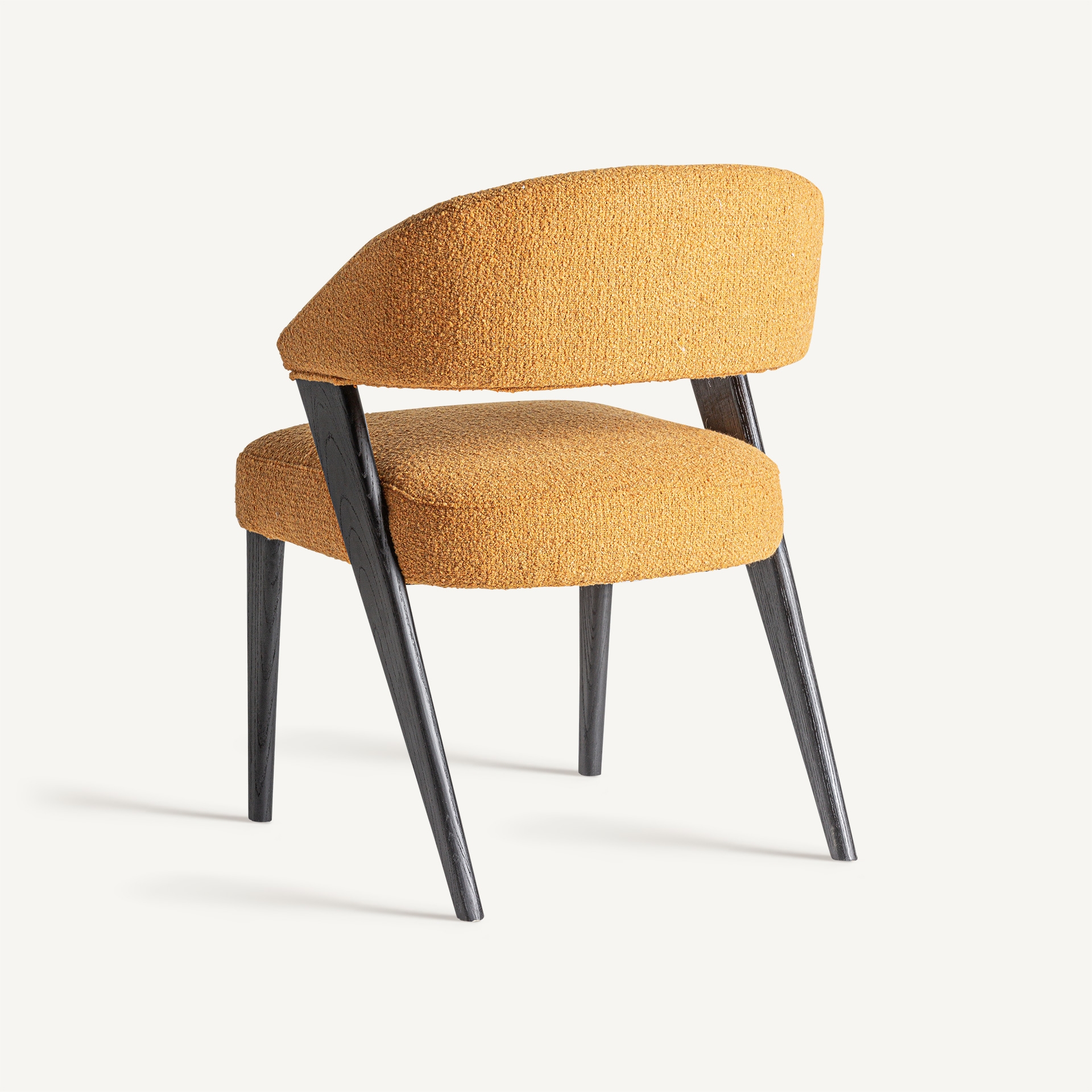 Vical kollektsioonist Veney tool kannab moodsa disaini selget vormikeelt, kus kohtuvad kvaliteetsed materjalid ja julge värviaktsent. Tooli karkass on valmistatud musta tooniga tamme täispuidust, kombineeritud vastupidava ja elastse kautšukipuuga, mis lisab konstruktsioonile tugevust ja pikaealisust. Iste ning seljatugi on polsterdatud sinepikollase, faktuurse polüesterkangaga, mille pealispinnal on marmorviimistlust meenutav efekt, luues sooja, modernse ja hubase üldmulje. SILLA sobitub loomulikult söögituppa, kööki või elutuppa, aga ka restorani, kohviku ja hotelli interjööriprojektidesse, kus hinnatakse stiilset tervikut, vastupidavust ja materjali ehedat tunnetust.