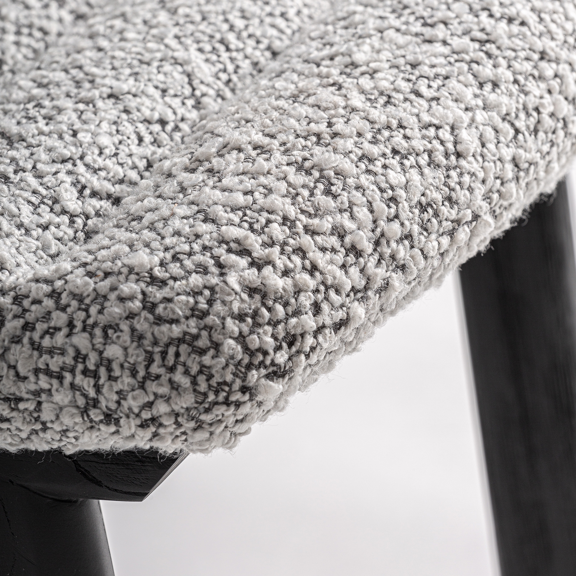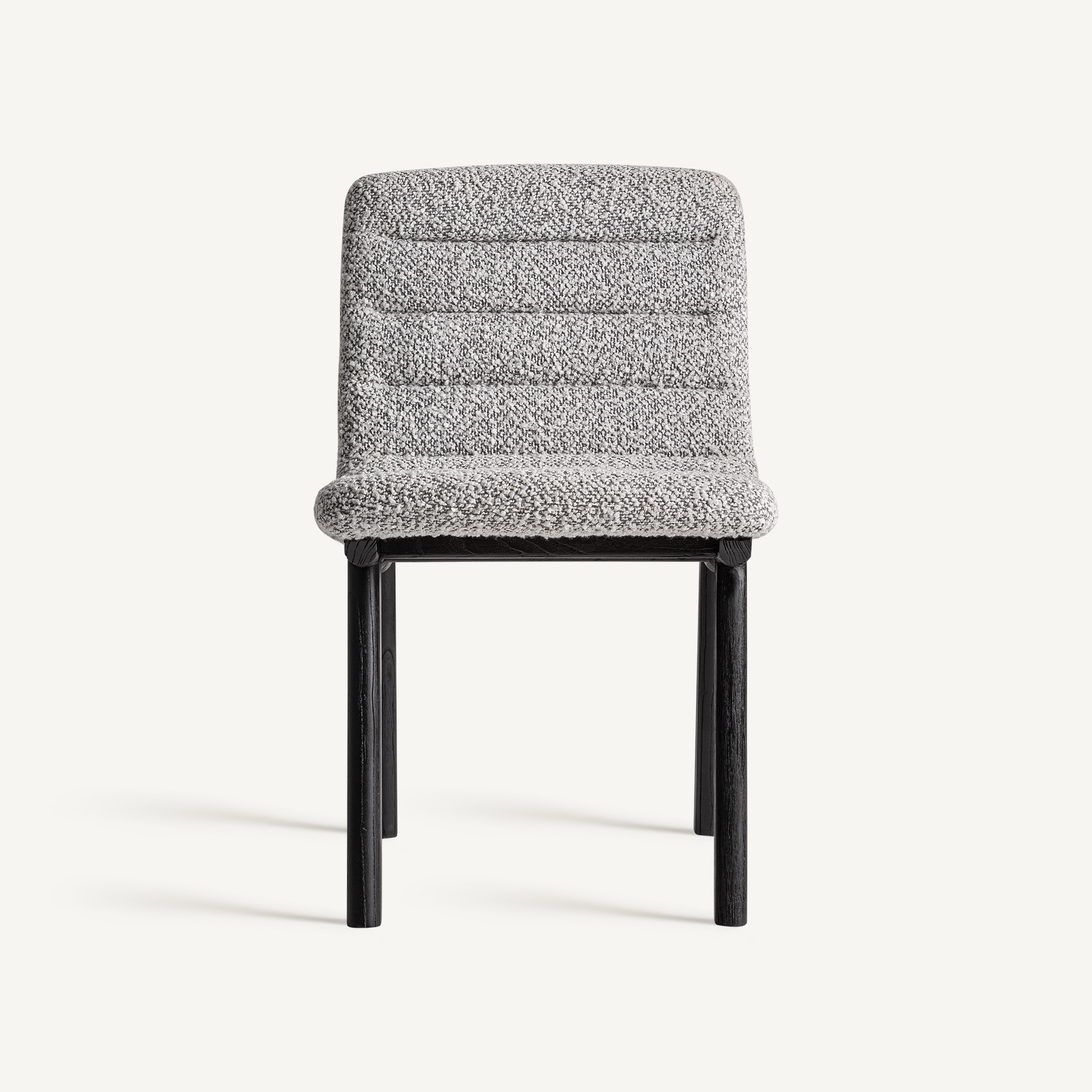 Vical kollektsioonist Jacquard tool on valmistatud 100% jalaka täispuidust karkassiga, mille kaunis ja elav puidusüü annab igale eksemplarile ainulaadse iseloomu. Tooli tugev puitraam on viimistletud sügavas mustas toonis, mis loob ruumis stiilipuhta ja modernse aktsendi, säilitades samal ajal naturaalpuidu sooja materjalitunde. Istmel ja seljatoel on tekstuurne buklee-efektiga hall mööblipolster, mis lisab hubasust ja pehmust, olles samal ajal vastupidav, praktiline ja kergesti hooldatav. Konstruktsioon ja vorm töötavad koos ühe harmoonilise tervikuna – ideaalne valik söögituppa, kööki ja esinduslikesse kommertsinterjööridesse, kus hinnatakse täispuidu vastupidavust ja ajatut disaini.