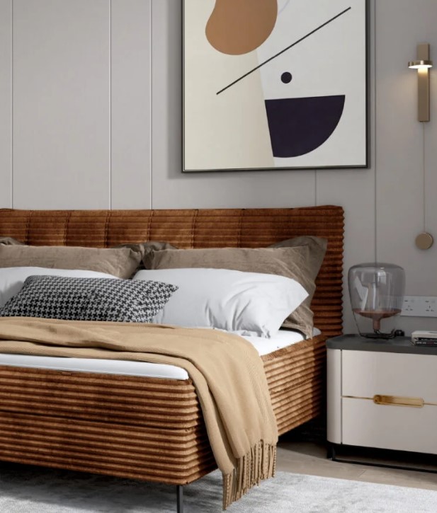 Soe pruun toon lisab magamistoale hubasust ning kombineerub suurepäraselt nii modernse kui ka luksusliku sisekujundusega.