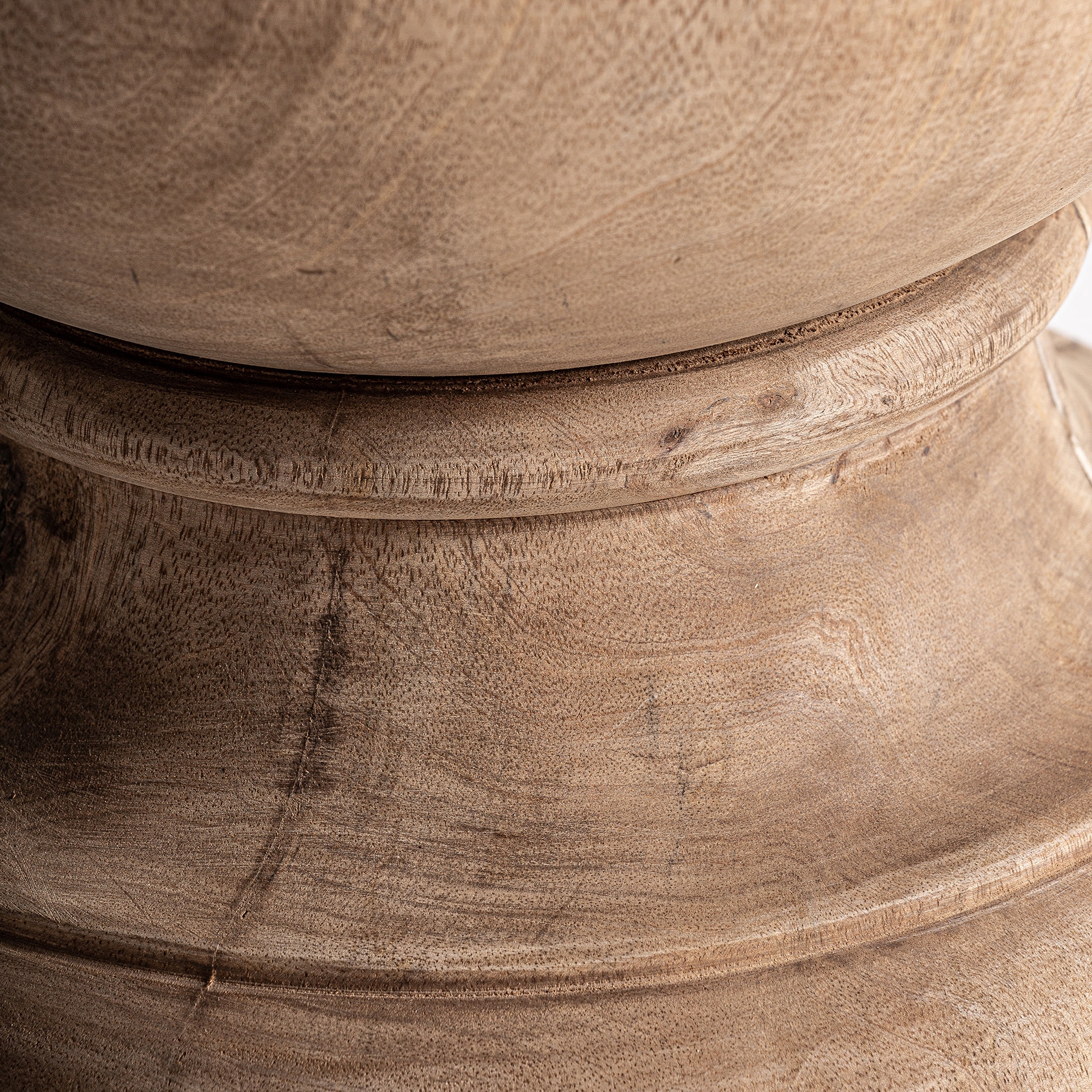 Vicali naturaalne laualamp on valmistatud kvaliteetsest mango täispuidust, mida iseloomustab soe toon, tihe struktuur ja kaunid loomulikud süümustrid. Lambi jalg on meisterlikult voolitud pehme, voolava kontuuriga klassikaliseks vormiks, mille ülemine osa tõuseb kergelt ülespoole ning alumine osa laieneb sujuvalt stabiilseks aluseks. See annab disainile elegantse, harmoonilise ja pisut skulpturaalse ilme.