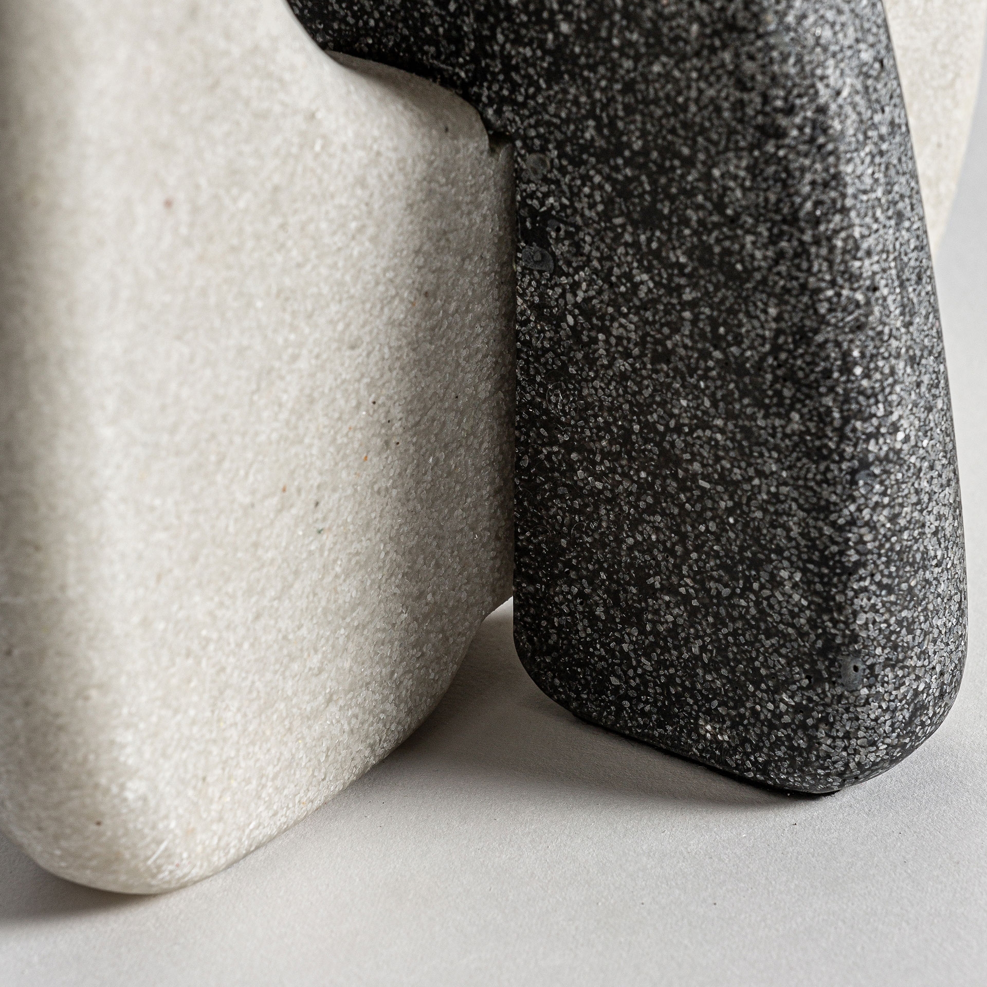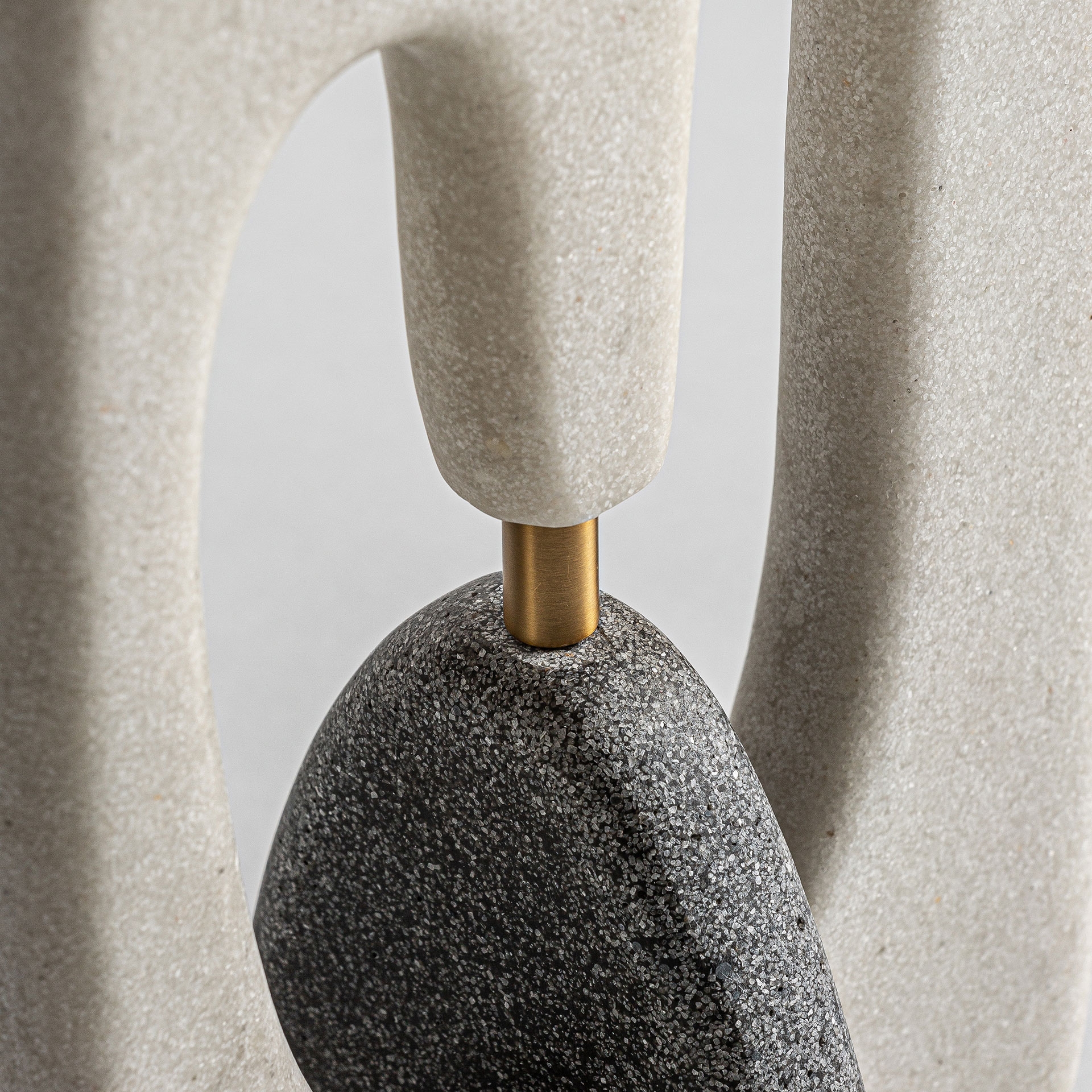 Vicali kollektsioonist Prisca laualamp on kunstilise vormikeelega, mis ühendab endas 1930ndate Art Deco mõjuga modernse šiki. Lambi jalg ei ole keraamikast ega travertiinist, vaid looduslikust riisikivist, mille pinnal on õrnalt struktureeritud mineraalne karakter. Jala orgaaniline kaarjas siluett ja vertikaalne must aktsentdetail loovad skulpturaalse kontrasti.