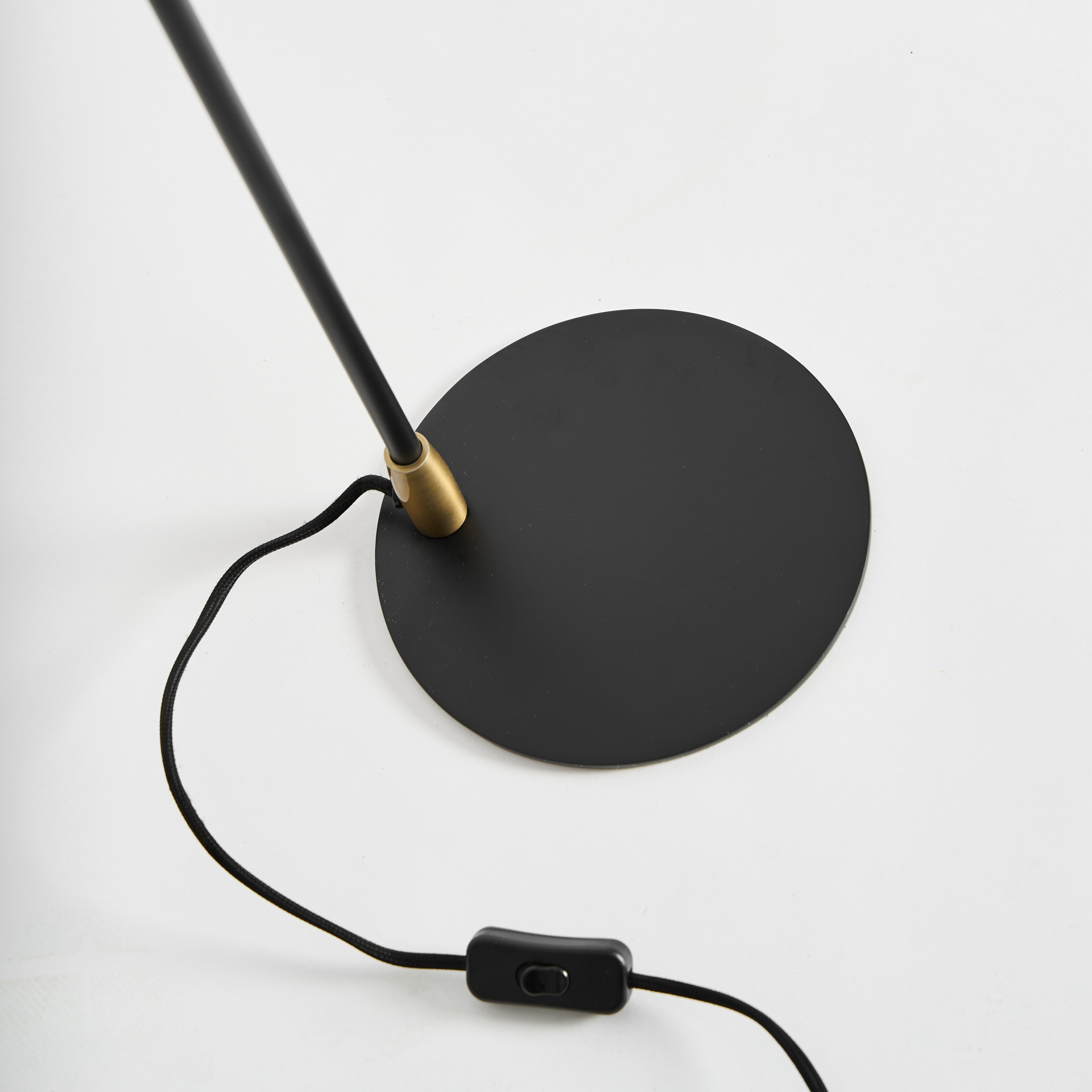 See Vicali laualamp ühendab modernse minimalismi ja peene metallikule viidava luksuse. Lambi jalg on sihvakas, puhta joonega ja mattmustast metallist, mis rõhutab disaini graafilist kergust. Silindriline lambikuppel on mattmustast metallist, mida raamib elegantne messingtoonis äär – see kontrast loob kõrgekvaliteedilise, rafineeritud välimuse.