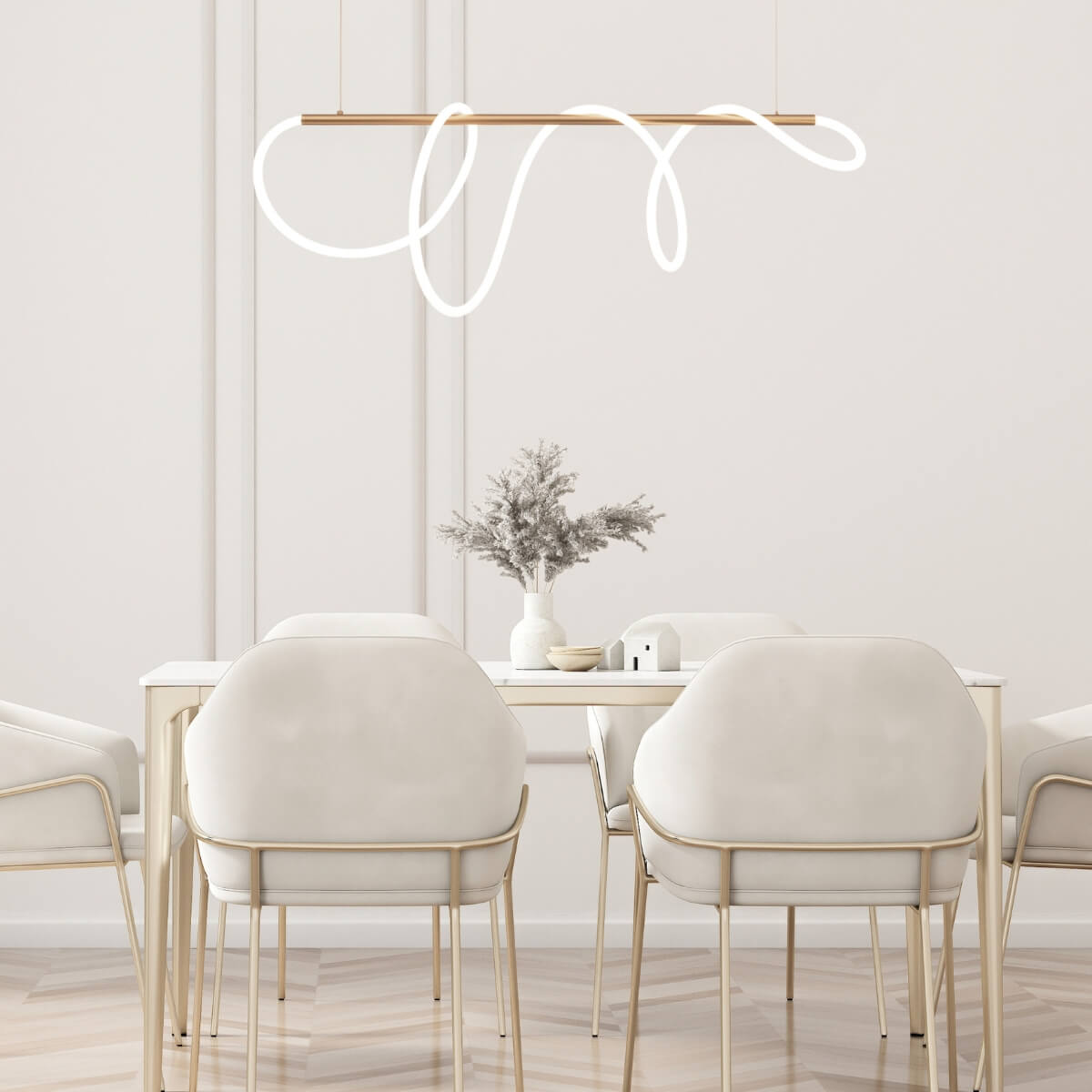 Rippvalgusti Zambelis Lighting kollektsioonist, saadaval IDEAhome e-poes, ühendab skulpturaalse vormi ja uuendusliku valguslahenduse. Valgusti keskmes on 360° ulatuses valgust kiirgav toru, mis tagab ühtlase ja hajusa valguse kogu ruumis. Kuldses toonis metallraam ja orgaaniline, voolujooneline kuju loovad mulje justkui hõljuvast valgusjoonest.