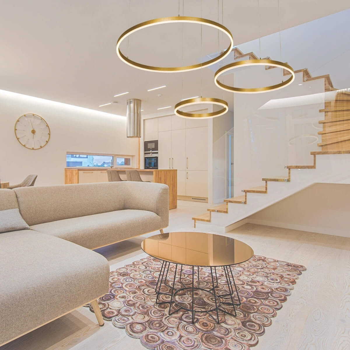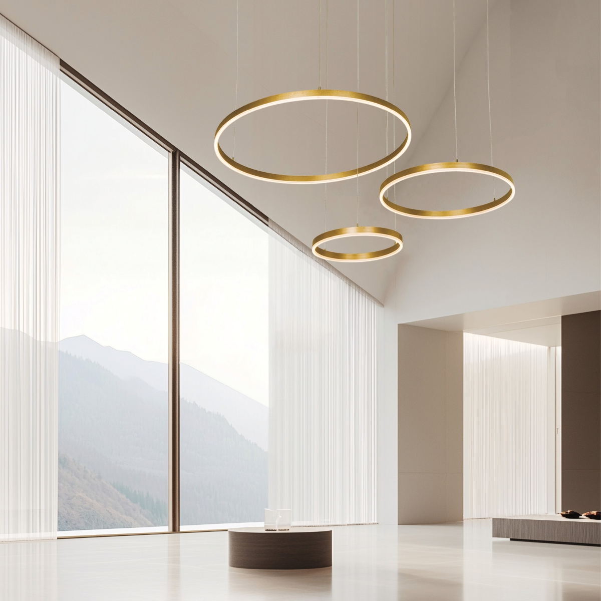 Rippvalgusti Zambelis Lighting kollektsioonist, saadaval IDEAhome e-poes, on kaasaegne ja graatsiline valguslahendus, mida iseloomustavad kolm erineva suurusega kuldset rõngast. Minimalistlik disain ja soe metallitoon loovad harmoonilise koosluse, mis sobib suurepäraselt avaratesse interjööridesse.