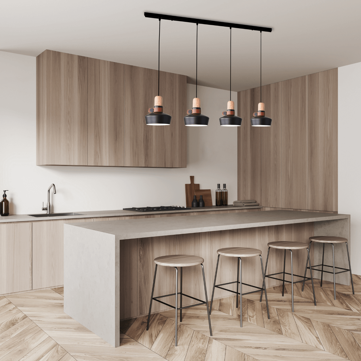 Rippvalgusti Zambelis Lighting kollektsioonist, saadaval IDEAhome e-poes, ühendab modernse disaini ja loodusliku materjali sooja puudutuse. Nelja musta metallist kupliga valgusti on täiendatud elegantselt viimistletud puidudetailidega, mis loovad hubase ja stiilse kontrasti. See kombinatsioon toob interjööri põhjamaist tasakaalu ja ajatust — sobitudes ideaalselt nii kaasaegsesse kui ka skandinaavialikku ruumi.