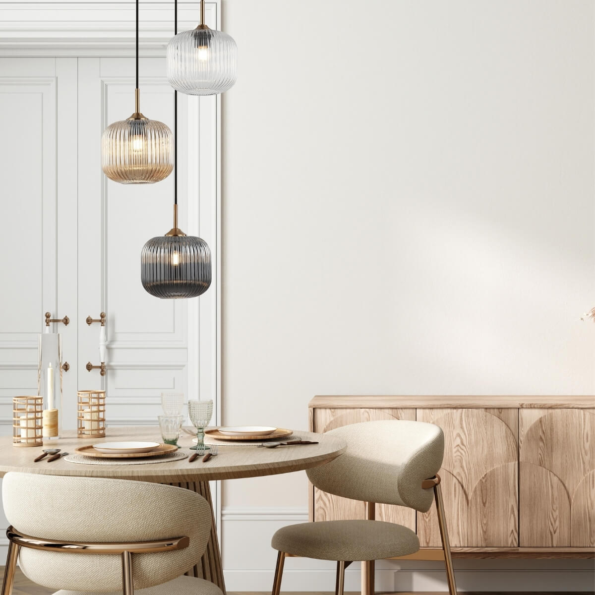 Rippvalgusti Zambelis Lighting kollektsioonist, saadaval IDEAhome e-poes, on elegantne ja peene joonega valgusti, mis ühendab endas ajatu disaini ja luksusliku materjalivaliku. Kolm eri kõrgusele paigutatud soonilise mustriga klaaskuplit loovad efektse valgusemängu ning lisavad ruumile visuaalset sügavust. Toonitud klaas – läbipaistev, šampanjakarva ja suitsune – loob sooja ning hubase atmosfääri.