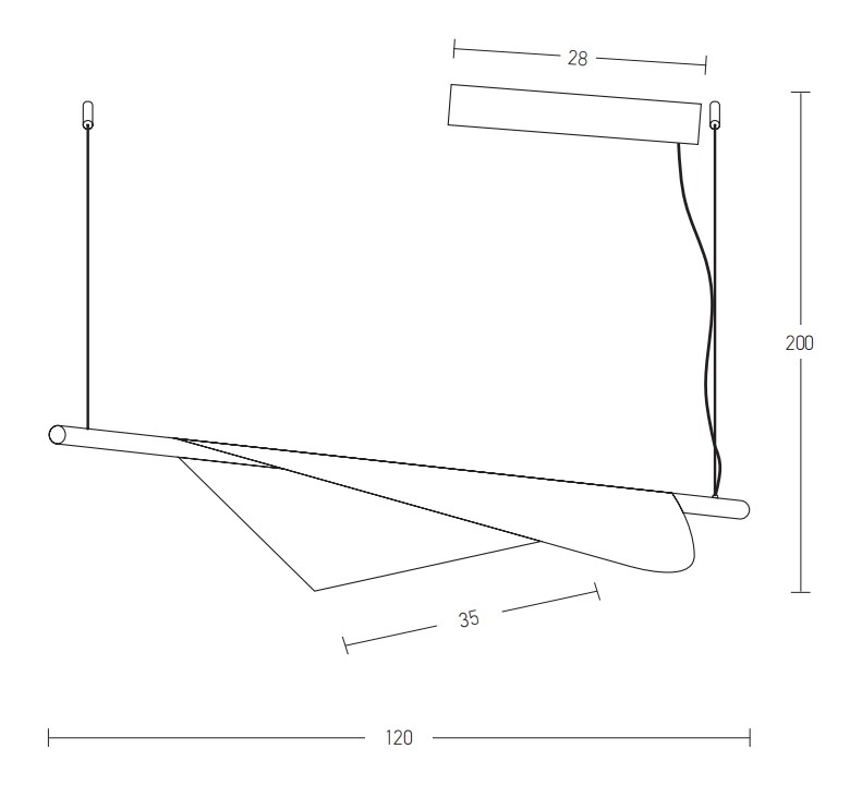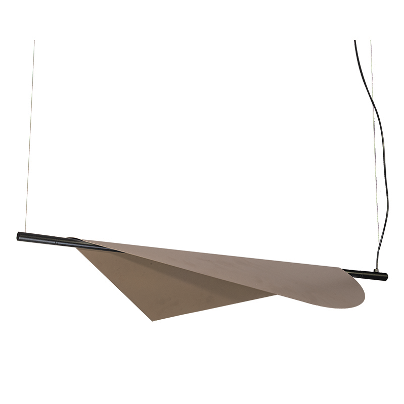 Valgusti koosneb metallist konstruktsioonist ning painutatud varjust, mille soe valgus peegeldub pehmelt allapoole. Disain on samal ajal minimalistlik ja kunstiline, sobides ideaalselt kaasaegsetesse interjööridesse, galeriidesse või disainiteadlikesse kodudesse.
