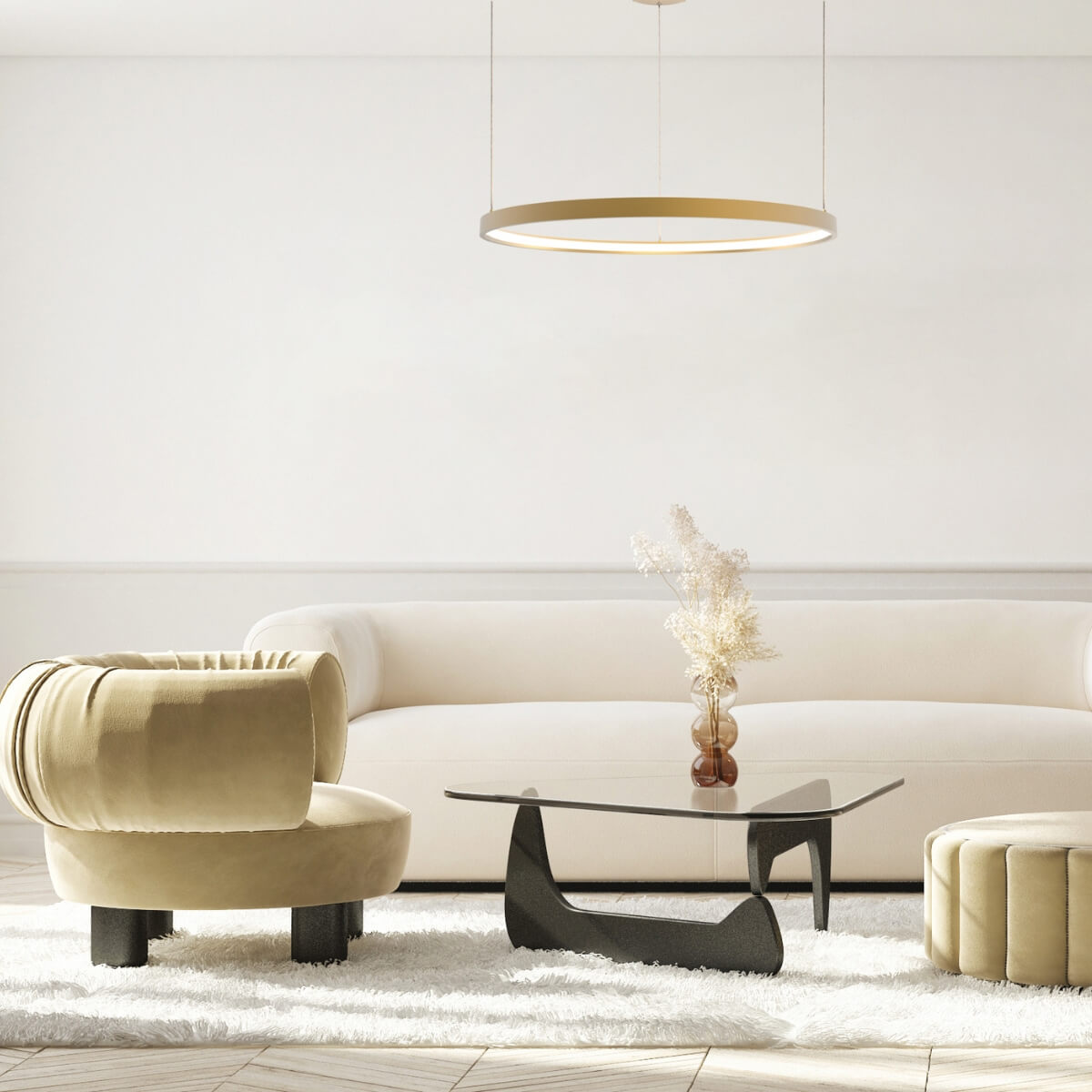 Rippvalgusti Zambelis Lighting kollektsioonist, saadaval IDEAhome e-poes, on kaasaegse disaini ja elegantse lihtsuse täiuslik ühendus. Selle õhuline, geomeetriline vorm ja kuldne mattviimistlus loovad modernse ja minimalistliku ilme, mis sobib suurepäraselt nii kodusesse interjööri kui ka avalikesse ruumidesse. Valgusti ühtlane LED-valgus hajub pehmelt läbi alumise difuusori, tagades meeldiva ja funktsionaalse valgustuse.