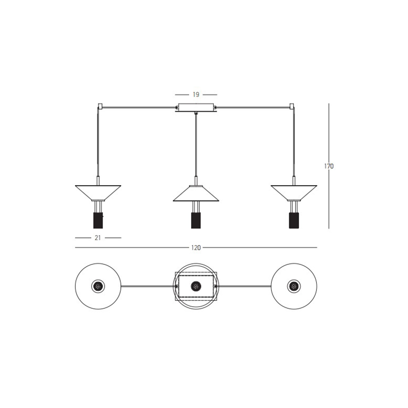 Minimalistlik vorm ja sümmeetriline ülesehitus teevad sellest valgustist täiusliku lisandi söögilaua, köögisaare või elutoa kohale. Õhukesed mustad juhtmed ja diskreetne kinnitusdetail loovad visuaalselt kerge efekti, mis rõhutab valgusti luksuslikku, kuid tasakaalukat olemust.