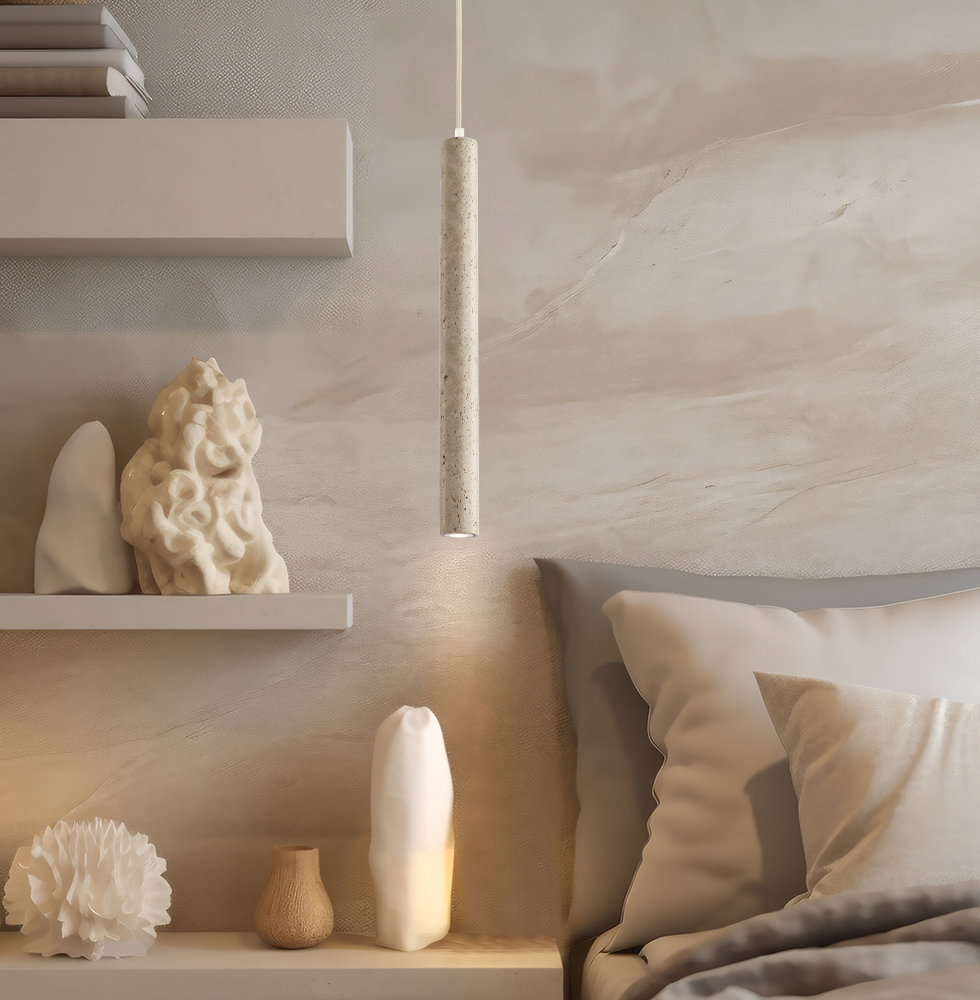 Travertiinist rippvalgusti Beige Leonard brändilt Viokef Lighting on suurepärane näide sellest, kuidas looduslik materjal ja modernne disain saavad kokku ajatus stiilis. Valgusti pikk ja kitsas silindriline kuju koos naturaalse travertiini tekstuuriga loob sooja, elegantse ja ainulaadse visuaali, mis sobib suurepäraselt nii kaasaegsesse kui ka klassikalisse interjööri.